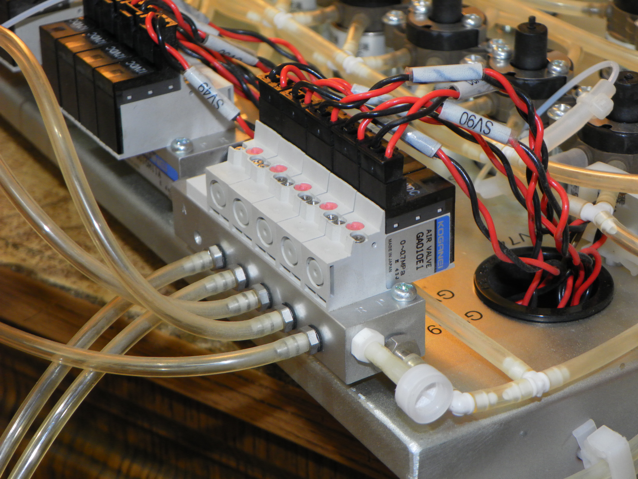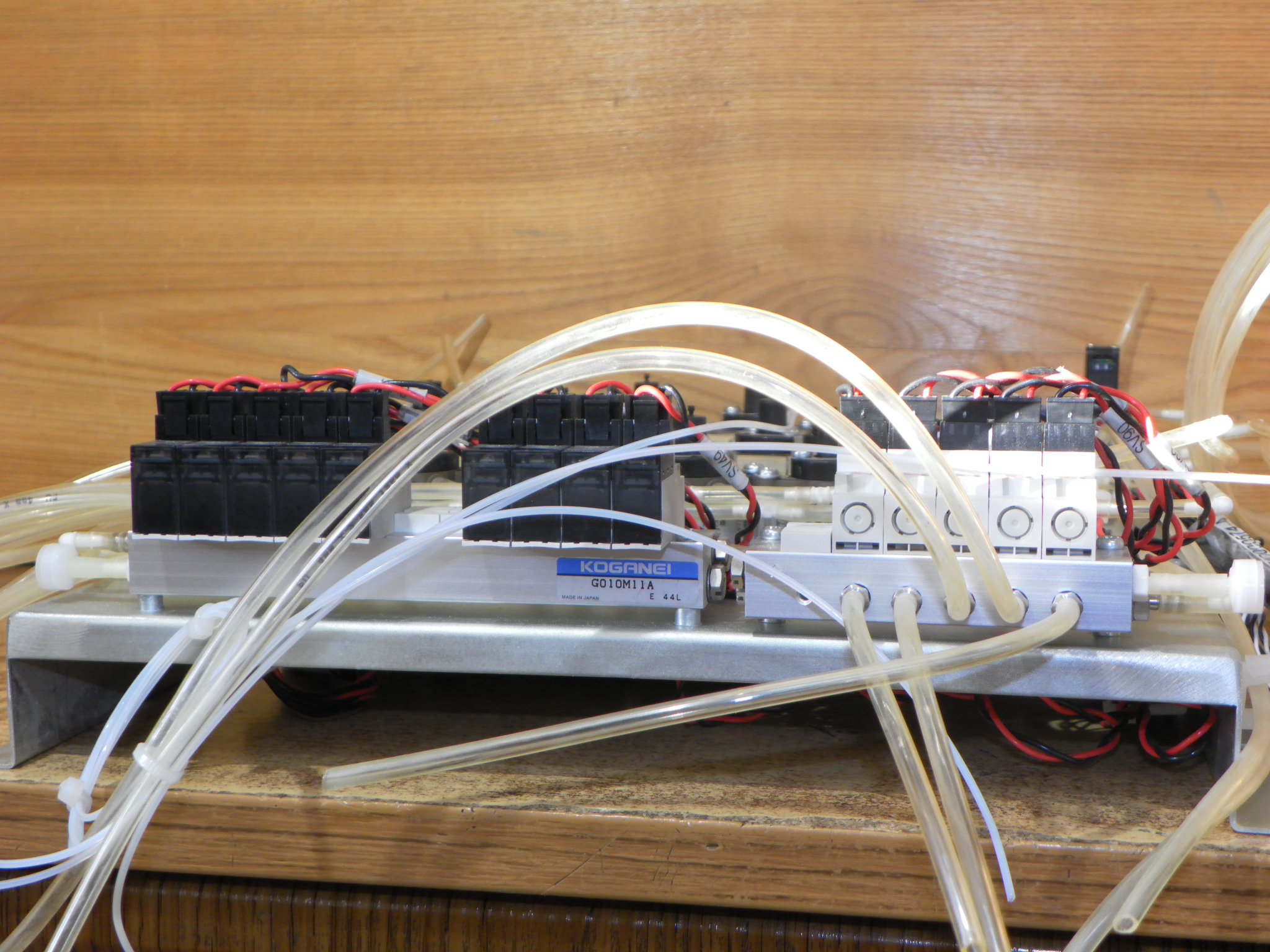 Dále obsahuje dva pneumatické rozvaděče japonské výroby KOGANEI a jeden samostatný ventil KOGANEI.