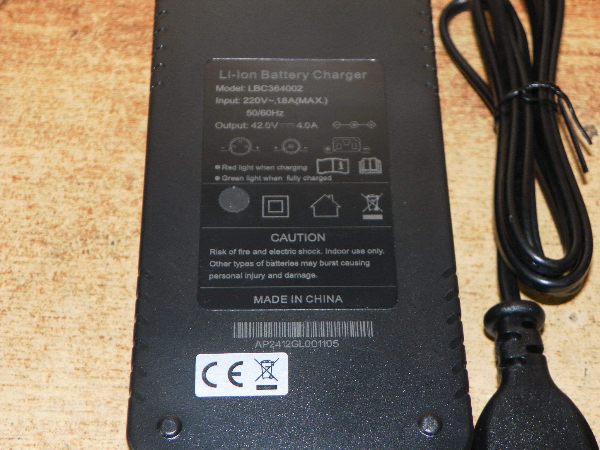 Nabíječka k elektrokolu, elektrokoloběžce. Pro Li-ion 36 V 10S baterie.